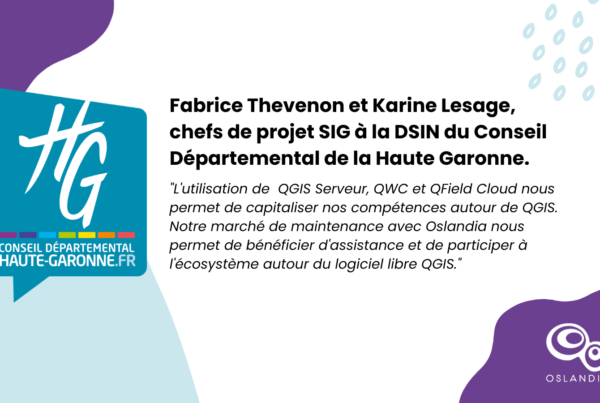 Caroline Chanlon 0 QGISQWCTémoignage client Tuesday April 28th, 2026 (Fr) [Témoignage client] Fabrice Thevenon et Karine Lesage, chefs de projet SIG à la DSIN du Conseil Départemental de la Haute Garonne Sorry, this entry is only available in French.Read More