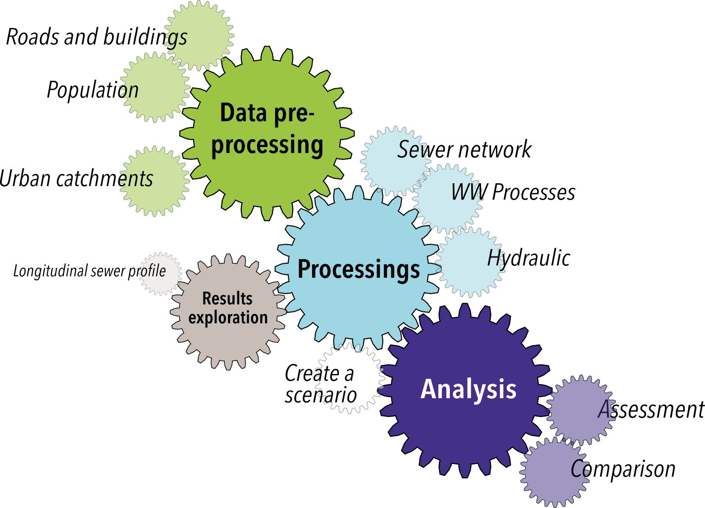 Elan est un outil d’aide à la décision pour une gestion intégrée des eaux urbaines (usées et pluviales) par des solutions fondées sur la nature. Il s’inscrit dans un objectif global de transformer la ville de demain pour la rendre résiliente au changement global. Cette transformation constitue un véritable défi territorial, ce qui rend particulièrement pertinent le recours au système d’information géographique (SIG).